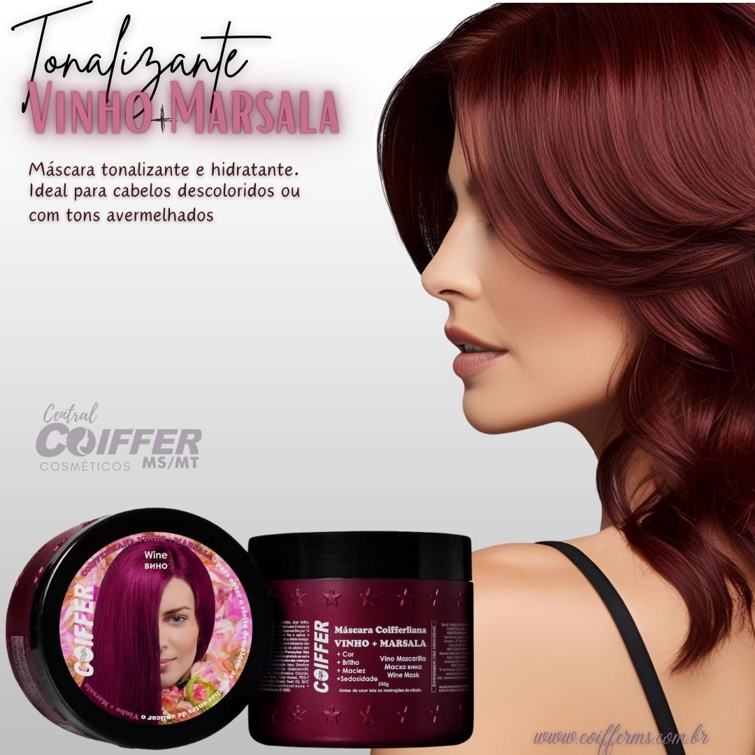 Mascara Coifferliana Vinho + Marsala 350g O Máscara Vinho Coifferliana Vinho Marsala Coiffer, tem o pigmento em creme que doa brilho e cor aos fios, e hidrata ao mesmo tempo. Máscara tonalizante e hidratante. Ideal para cabelos descoloridos ou com tons avermelhados